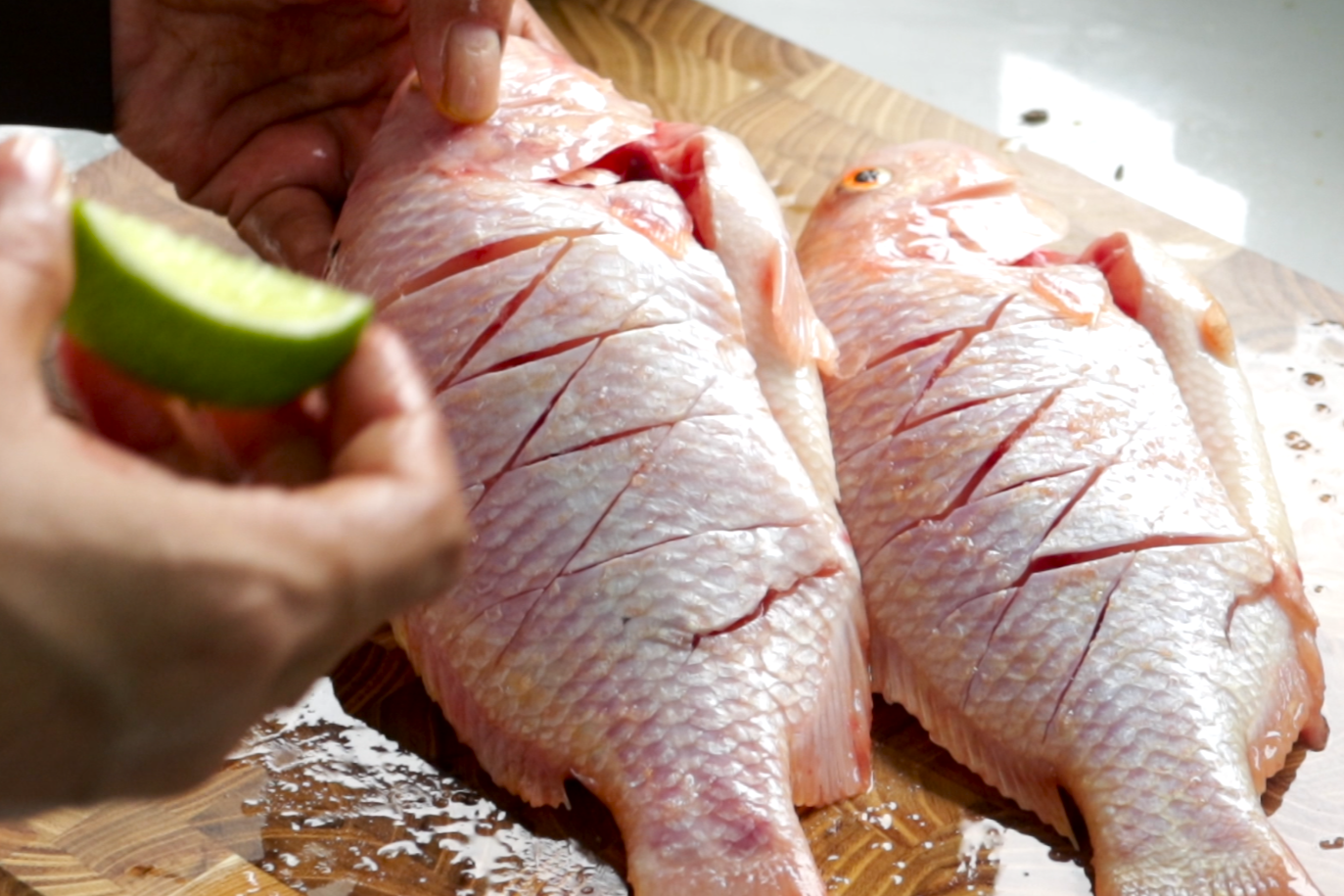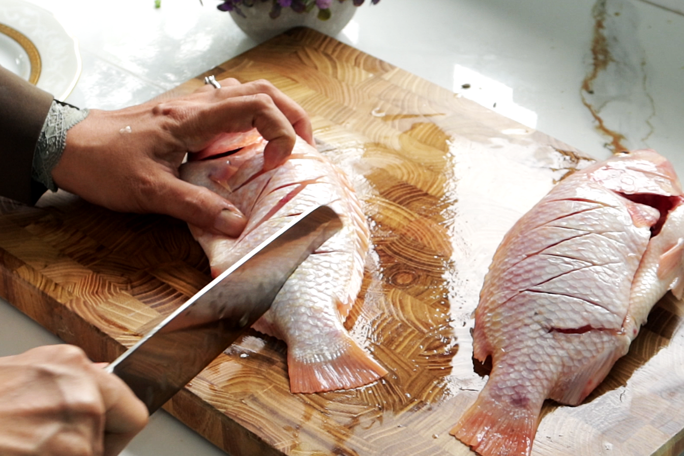 Kelar ikan supaya rempah boleh menyerap masuk ke dalam isi ikan.