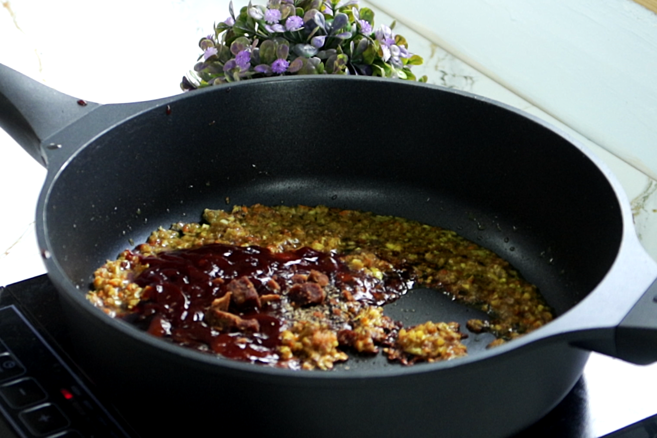 Masukkan sos tiram, sos cili, sos tomato, serbuk blackpaper, garam, dan gula melaka.