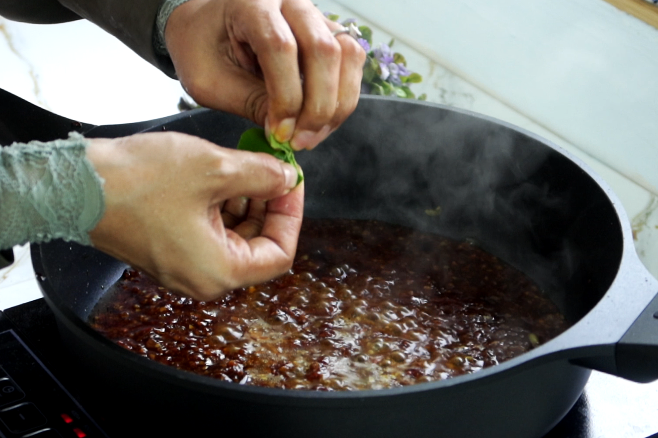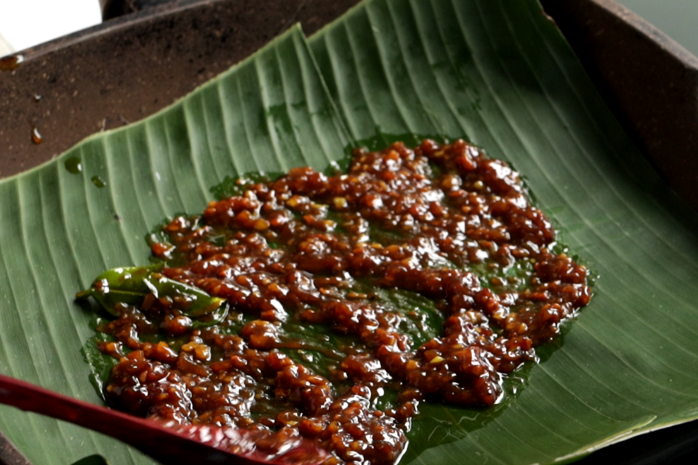 Tumiskan sekejap dan tambah sedikit air. Masukkan dan limau purut, dan setelah tumisan mula pecah minyak, boleh tutup api dapur.
