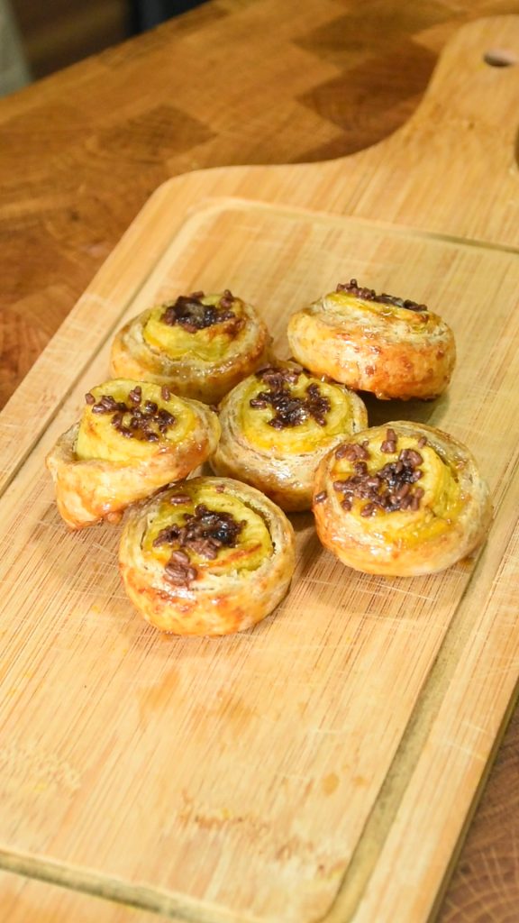 Tabur sedikit chocolate rice ke atas potongan paratha.