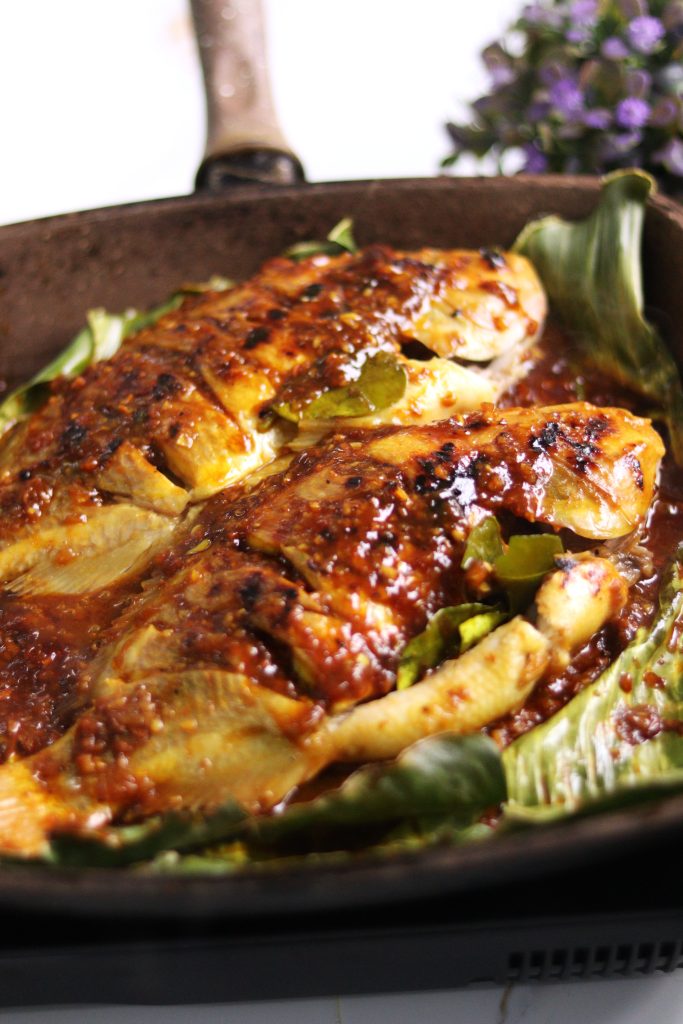 Letakkan ikan dan lumurkan sos ikan bakar jimbaran ke seluruh permukaan ikan dengan sekata.